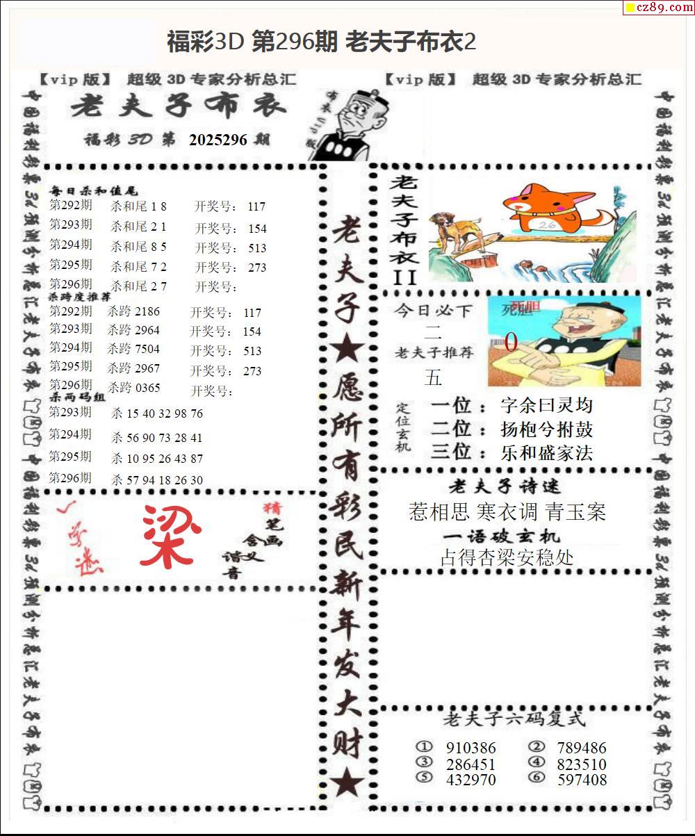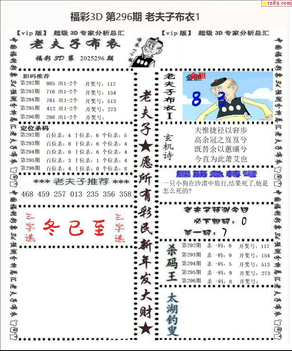 老夫子布衣2025296期3d图谜