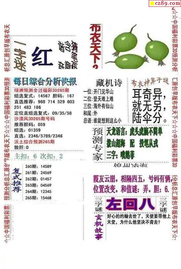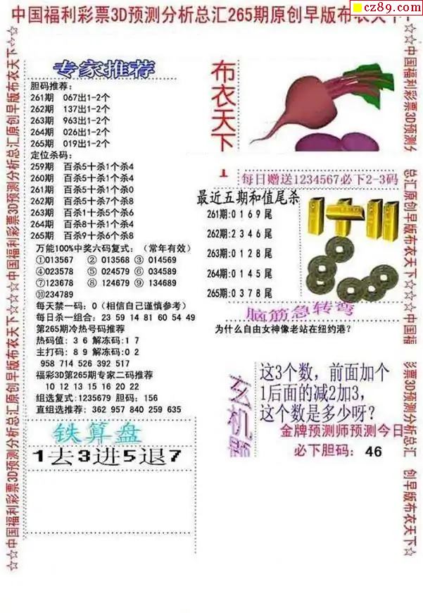 早版布衣2025265期3d图谜
